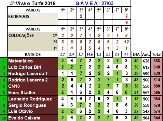 HOMOLOGAÇÃO DO RESULTADO FINAL 3º VIVA O TURFE 2018 GÁVEA / CIDADE JARDIM (10 A 27/03/2018)
